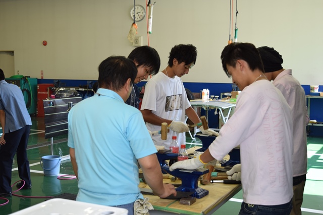 バイク整備以外の体験学習で今回新たに簡易な板金体験を実施しました。