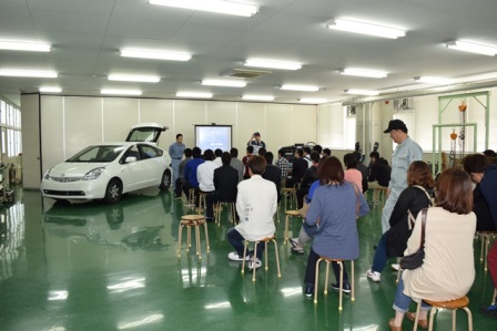 プリウス、リーフなどエコカーの展示・試乗、エンジンの分解やシャシー