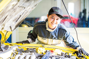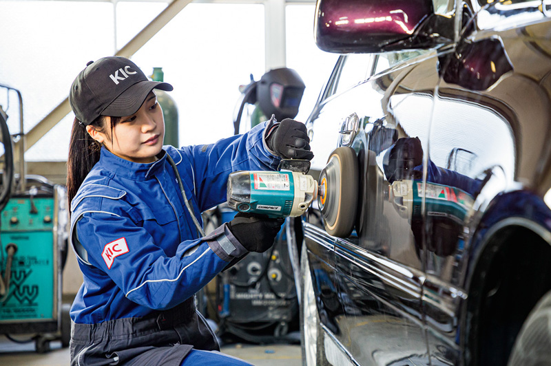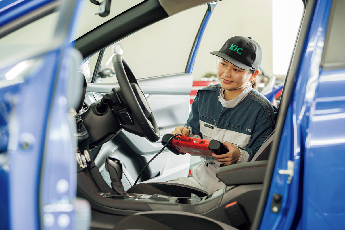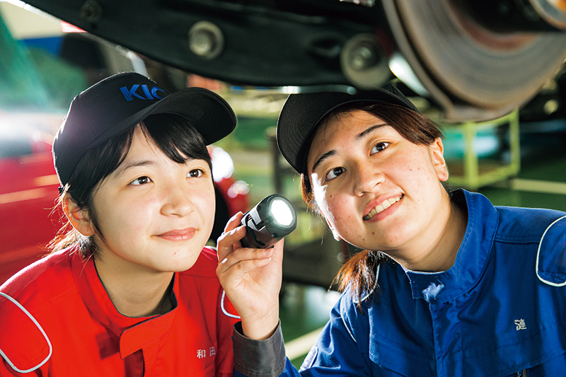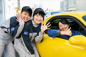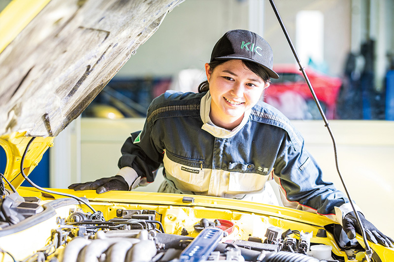 女性ドライバーが増加し、業界が熱い期待を込めて求めている女性整備士。彼女たちはいま、活躍の場を広げています。KICでは入学金の10万円を免除、さらに初年度に10万円を支給し、これから整備士を目指す貴重な女子学生をサポートします。
