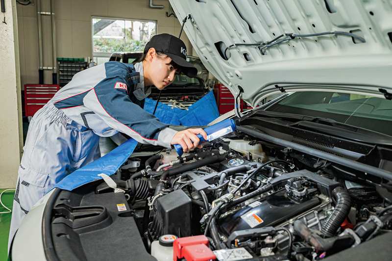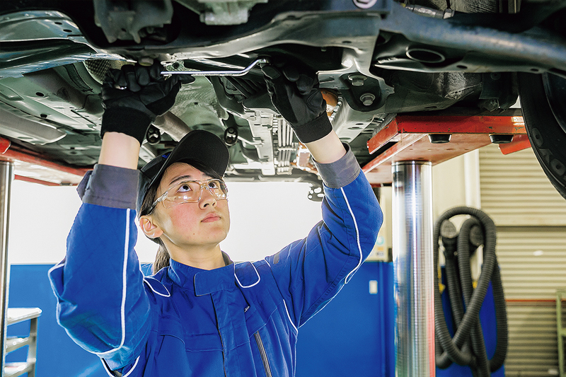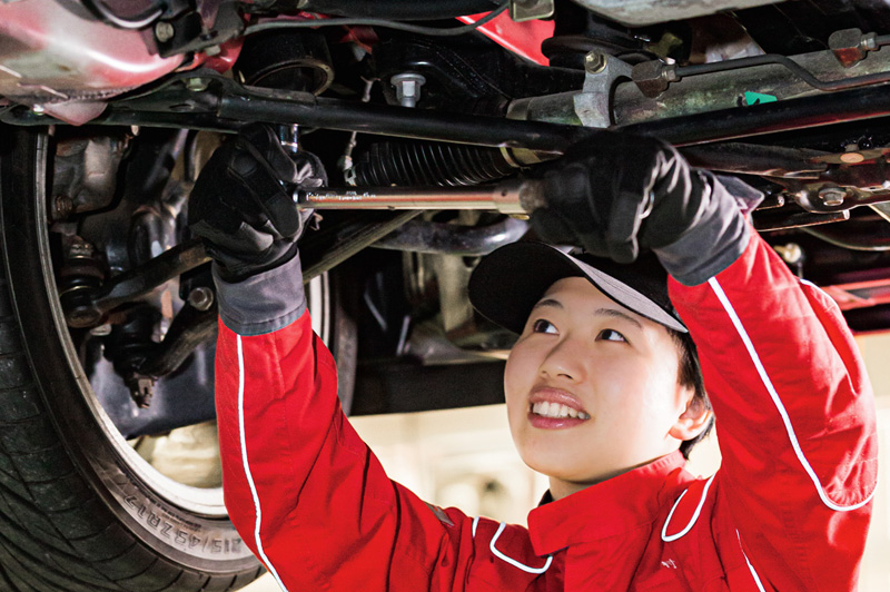 男性社会のイメージが強い自動車整備業界ですが、最近は、女性整備士=クルマ女子・バイク女子が確実に増えていて、全国で1万人以上の女性整備士が活躍しています。細かい気配り、丁寧な仕事、親切なお客様対応など、女性ならではのアドバンテージもいっぱい。女性整備士が、これからもっと求められていくのはまちがいありません。
