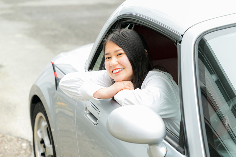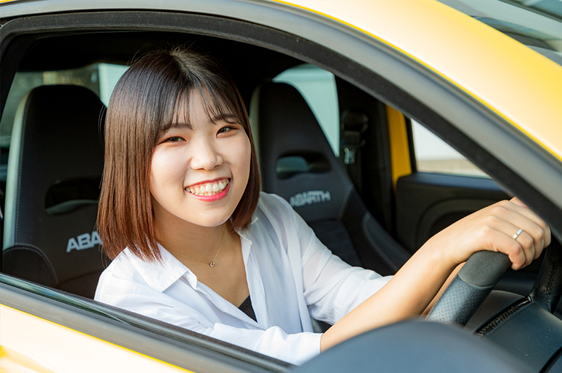 車に乗ることが好きで、デザインや構造が気になっていました。車を扱うことのできる女性は格好良いという憧れがあります。「私の一度の人生、好きなことを学んでみたい」と、10年続けた介護の仕事を辞め車の道へ進みました。KICのパンフレットを見て女性の先輩方のメッセージが私を勇気づけてくださいました。車の仕事は、男性社会のイメージはつきものですが、KICに入学してみて、性別の垣根は無く、女性だからと可能性が奪われることはないと知りました。重たいものを持ち上げなければならない時など工具の扱いは、身体の使い方を工夫するのです。実習授業では、細かな作業やエンジンルームの細かい場所に手を入れられるのは、女性の方が得意であることも多いです。知識経験ゼロの状態で踏み込んだこの世界ですが、クラスメイトや先生は、皆優しく教えてくれます。もう少し勉強したい所はフリースタイルラーニングの日に先生がマンツーマンで教えてくれたりとしっかりと応援、指導をしてくれます。学費面での女子学生のサポートもありますし、女性の先生や先輩方もいらっしゃるので、授業以外の生活のことも相談できます。